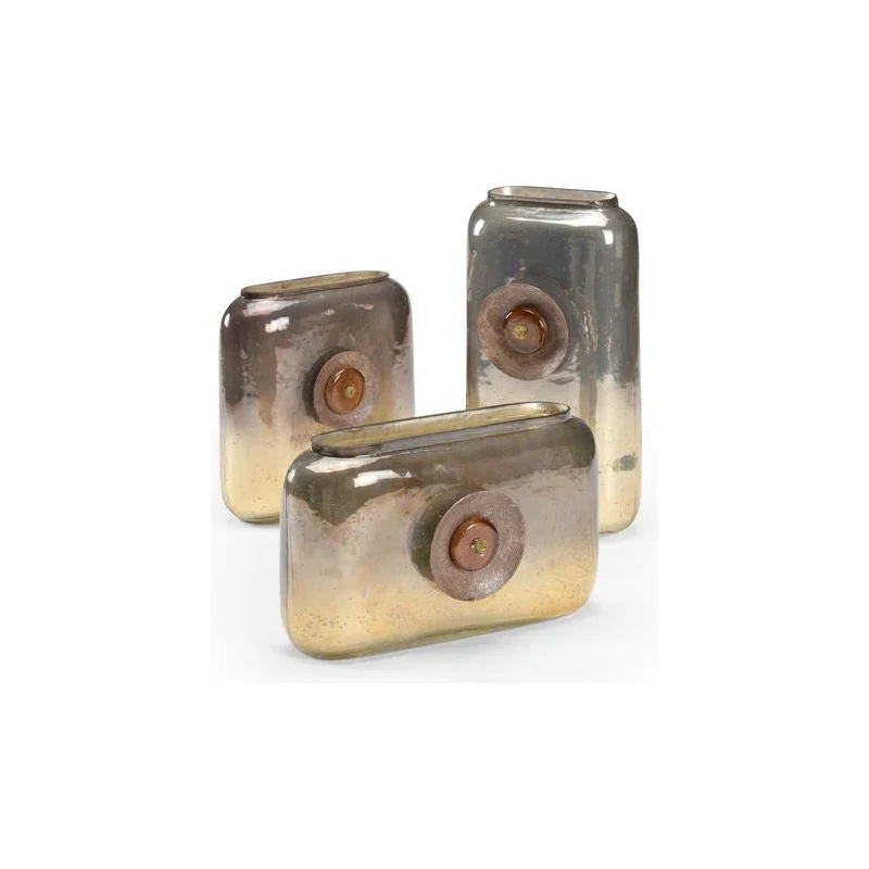 Enhance any space with the Blaze Oval Vases Set, a striking collection of three vases that boast an eye-catching ombre copper design. Each vase transitions smoothly from a rich brown to a warm yellow, creating a stunning visual effect that is both modern and timeless. The glossy finish adds an extra touch of elegance, making these vases a perfect centerpiece for any room. Whether placed on a mantel or a dining table, their decorative circular metal accents offer an additional layer of sophistication. The set includes three different sizes, allowing for versatile styling options. Arrange them together for a cohesive look or spread them across various spaces for a unified theme throughout your home.
