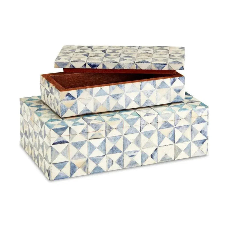Blue White Sky Blue Box Set of 2 - LOOMLAN - Currey & Co - Boxes & Bowls