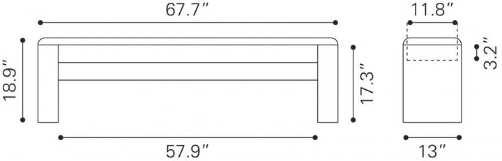 - Overall Dimensions (WxDxH): 67.7 x 13 x 18.9