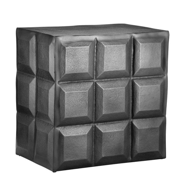 The Bower Side Table stands out with its sleek design and contemporary charm. Crafted from cast aluminum, this table has a textured black nickel finish that adds a touch of elegance to any room. Its distinctive columns of squares create a brutalist feel, while the stippled surface and matte finish add depth and character. This side table is a versatile piece, fitting seamlessly into a variety of interior styles, including rough luxe and contemporary designs.