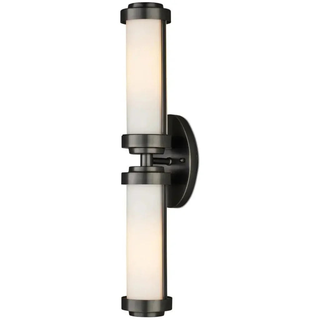 The Bowland Bronze Bath Wall Sconce features a contemporized hourglass shape designed with a fresh, modern feel. Inspired by an antique fixture, the time-honored profile is updated with sleek caps surrounding the opaque glass tubes at the top and bottom. The articulate center transition between the two elements further enhances this modernization. The metal on this sconce is in an oil-rubbed bronze finish.