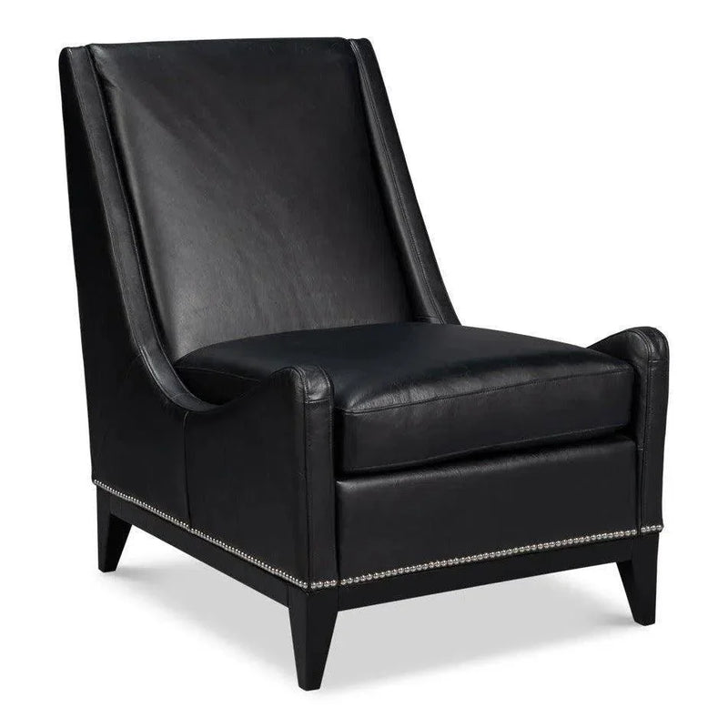 Brandy Leather Black Armless Accent Chair - LOOMLAN - Sarreid - Accent Chairs