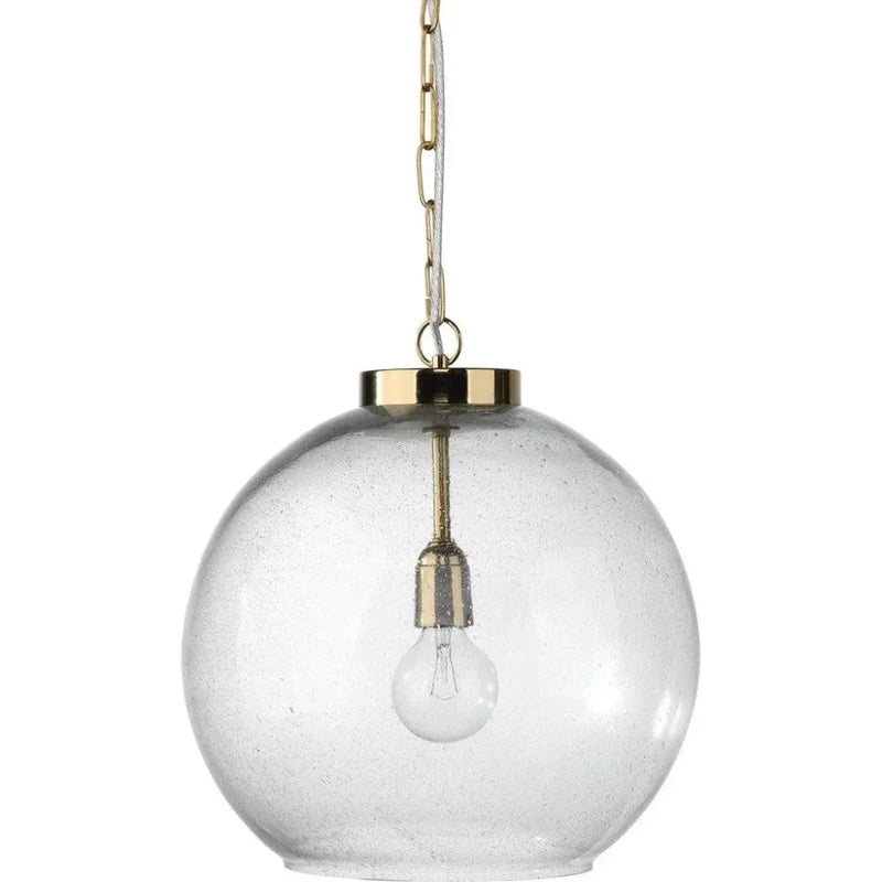 Transform any space into a gallery of industrial luxury with our Brass & Glass Luca Pendant. The mouth-blown seeded glass globe adds sophistication, while the antique brass finish hardware exudes timeless elegance. Illuminate with artistic flair, impressing even the most discerning guests. Industrial Modern loft style pendant with a mouth blown seeded glass globe. Antique brass finish hardware Transform any room into a gallery of industrial luxury with our Brass & Glass Luca Pendant. The intricately mouth-blown seeded glass globe adds a touch of sophistication, while the antique brass finish hardware exudes a sense of timeless elegance. Illuminate your space with artistic flair that will impress even the most discerning of guests.