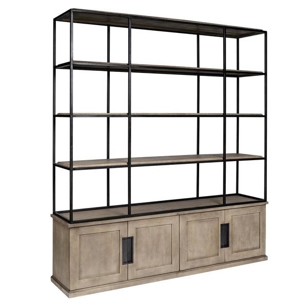 Braxton I Wood and Iron Shelf Unit With Ample Storage Features:
