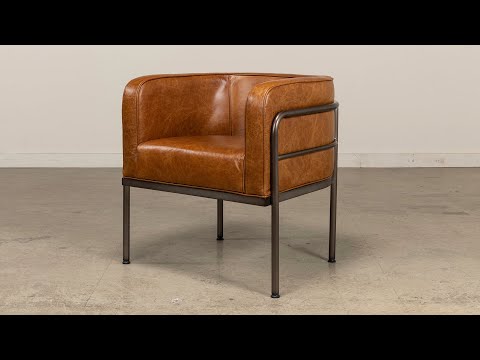 Enhance the style of your modern living space with the sleek and comfortable Breda Retro Brown Leather Accent Tub Chair. The sturdy iron frame, coated in deep charcoal, and top grain chestnut leather upholstery provide unbeatable comfort and durability. Make a design statement with this expertly designed and crafted chair.