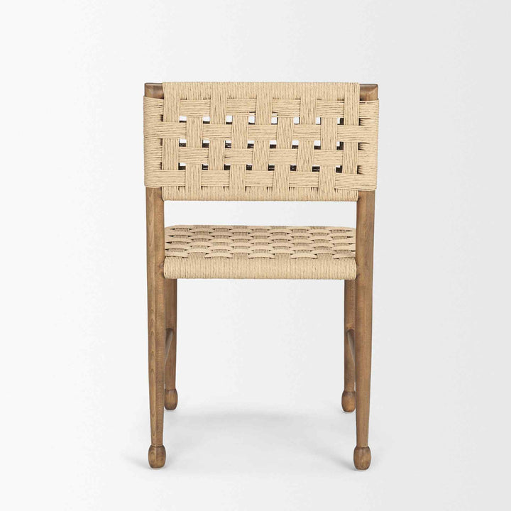 This dining chair blends rustic texture with refined craftsmanship for a beautifully balanced seating experience. Crafted from kiln-dried solid beech wood, its frame is joined with traditional mortise-and-tenon joinery for lasting durability. A handwoven double-layer seat and armless design—made from natural paper rope—adds tactile warmth and visual rhythm, while subtly rounded egg-shaped feet soften its angular profile. The rich brown hue adds natural elegance, making it ideal for rustic, Scandinavian, or modern organic settings. Perfect for any dining room, it enhances everyday meals with its timeless appeal and high-quality build. Conveniently, it comes fully assembled, ready to style right out of the box.