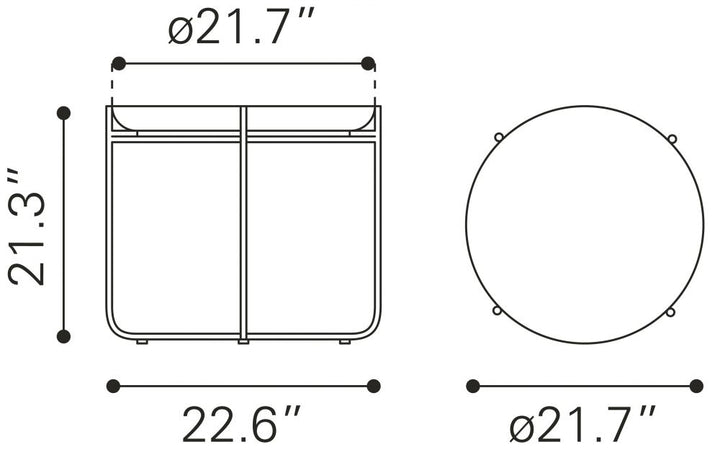 Overall Dimensions (WxDxH): 22.6" x 22.6" x 21.3"
