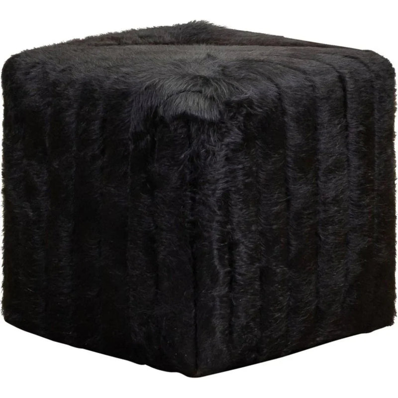 The Bryant Cube Ottoman offers a blend of modern design and plush comfort, making it a versatile addition to any living space. Available in Hair on Hide Solid Black and Hair on Hide Camel finishes, this ottoman showcases a cube shape accented with channel and diagonal stitching, adding a sophisticated touch to your décor. The Solid Black finish presents a sleek and timeless appeal, while the Camel finish features a chic striped pattern with plush fur texture for added elegance. Designed for both style and functionality, the swivel capability enhances its versatility, allowing it to adapt seamlessly to your needs as a footrest, extra seating, or a decorative piece.