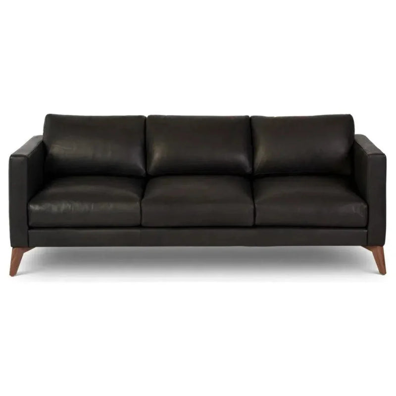 Experience a blast from the past with the Burbank Leather Sofa. Inspired by the modernist design culture of 1950s Los Angeles, this elegant yet contemporary piece features hardwood legs, clean lines, and a luxurious silhouette. Crafted with kiln-dried hardwood, hardwood plywood, and corner-blocking, gluing, and stapling techniques, this sofa is built for long-lasting durability. Sinuous springs support the seat and back cushions, ensuring a plush seating experience.