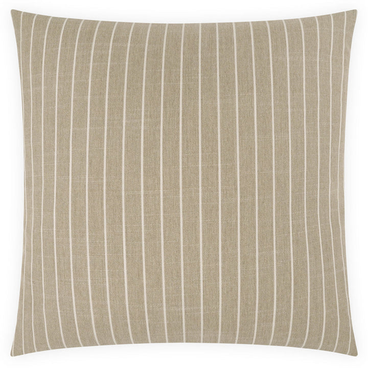 The Butler Pillow blends timeless elegance with cozy comfort, making it a versatile addition to any home. Handcrafted in California, each pillow is carefully cut and sewn to order, ensuring unique quality and charm. Available in calming sage green with white stripes or a chic tan and taupe design, these pillows complement both traditional and farmhouse interiors. Made from 100% polyester, the covers are soft, durable, and easy to maintain with removable inserts and hidden zippers for a seamless finish. Filled with a plush blend of 95% feather and 5% down, the Butler Pillow offers lasting comfort and style.