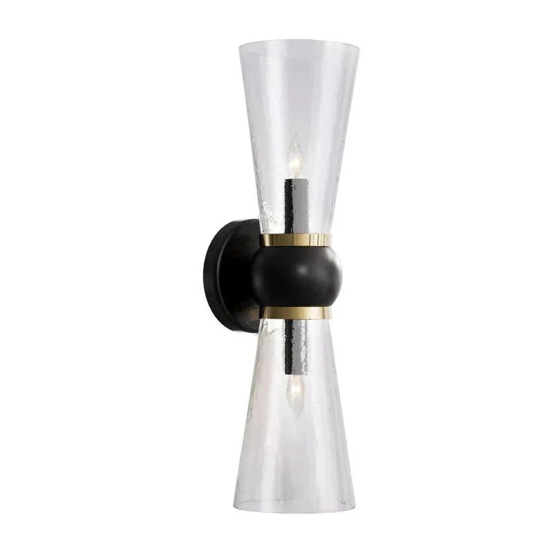 Crafted from durable brass with a rich oil-rubbed bronze finish, the sconce's structure brings a sophisticated yet understated charm to modern and traditional interiors alike. The hammered glass diffusers lend a tactile, artisanal detail that not only enhances the fixture’s visual appeal but also contributes to the quality of light it emits. With their combination of functionality and style, these sconces serve as both practical lighting solutions and decorative accents, elevating the overall design of any bathroom space.