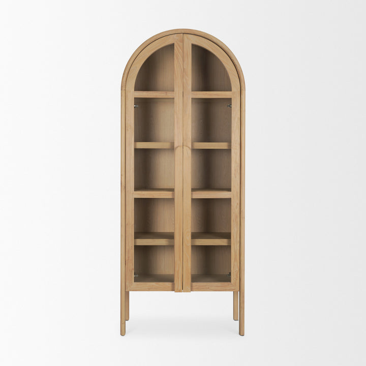 Callum Wooden Light Brown Arched Bookcase With Glass Doors Features: