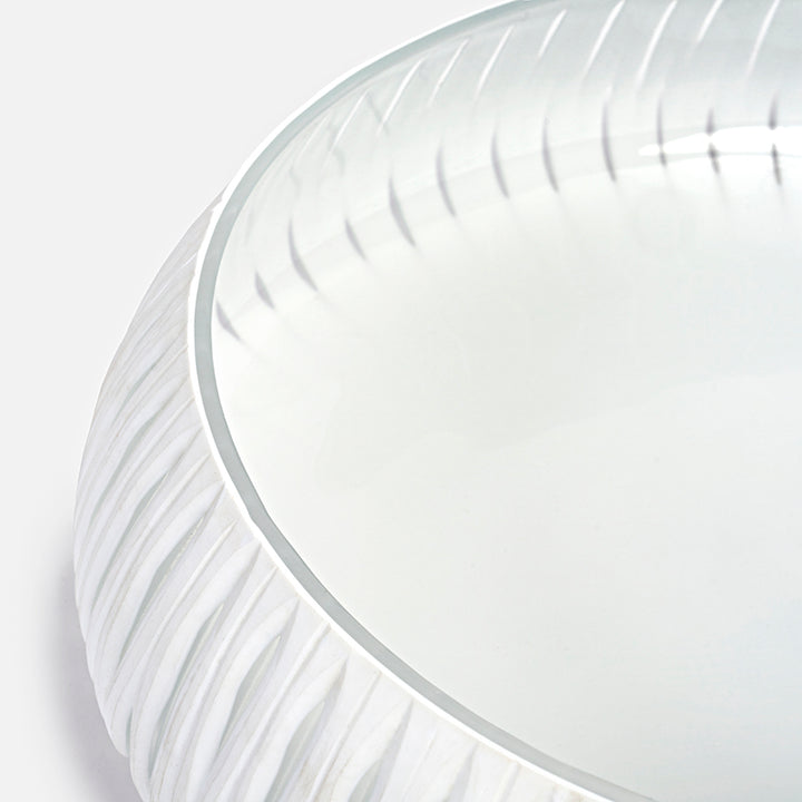 The Camille Bowl is a blend of beauty and versatility. It features a unique double-layered glass design with a clear base layer and a matte white top layer. The white layer is carefully carved to reveal the clear glass underneath, creating a stunning two-tone effect. This bowl is not just a piece of art but also a functional addition to any table setting. Its elegant and simple design makes it perfect for both everyday use and special occasions. The craftsmanship behind the Camille Bowl ensures it's a standout piece in any home, offering both style and practicality.