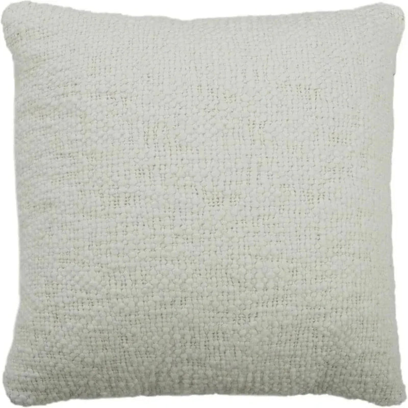 Spun of the softest cotton, the yarns used in the weaving of this pillow face are "slubbed". That affect is created by tension placed by the hand spinning it. These "slubs" create wonderful texture when woven into fabric. They create areas that appear more open and those that are fluffed. This should not be considered a flaw as it is indicative of the character of the yarns. This yarn characteristic creates a dimensional texture that is oh so soft. This pillow is at home in a farmhouse, urban loft, or penthouse suite. The luxurious softness is unparallelled. Some light pilling with aggressive use is to be expected. Knife edged, this pillow features a coordinating silid cotton duck back with a hidden zippered closure for ease of fill. This Rizzy Home accent pillow represents a true marriage of comfort and style that's a beautiful addition to any interior living space. With its generous 20" x 20" size, it offers ample support for lounging or simply as a cozy accent for your sofa, chaise or bedding. Crafted in a finely woven solid design with soft cotton nubby yarns for, it offers a plush texture that's soft to the touch. This finely constructed pillow features both tight and open places in the weaving which is an inherent characteristic of the nubby yarns. The classic cream color presents an elegant yet understated coziness that will seamlessly mesh with a variety of design styles, accents and colors, from modern to shabby chic. The knife-edged finish keeps the pillow's shape intact, ensuring a clean finish with a hidden zipper closure for easy removal and cleaning.