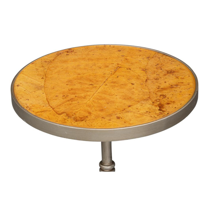 Carolina Leaf Side Table With Aged Iron Patina Finish Features: