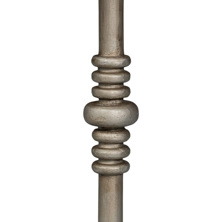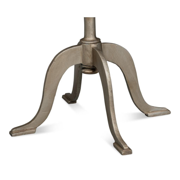 The Carolina Leaf Side Table blends industrial charm with artisanal craftsmanship. Standing 24 inches high, its cast aluminum base features a unique aged iron patina finish, offering a vintage look that fits well in any contemporary setting. The 14-inch diameter top is crafted from tobacco leaves by Artisan Leaf LLC, showcasing traditional skills from Wilson, N.C. This piece not only serves as a functional side table but also as a conversation starter, reflecting the rich history of Sarreid Ltd and its connection to the local community. Its brown and silver hues add a touch of elegance, making it a versatile addition to any room.