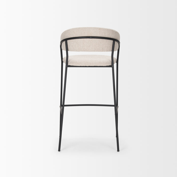 - The sophisticated oatmeal fabric and timeless black metal combine to create casual bar stool with modern finishes.