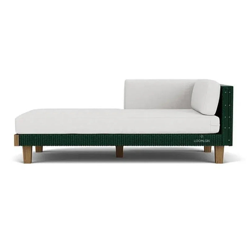 This high-quality outdoor RIGHT ARM CHAISE is part of the Lloyd Loom Catalina collection, featuring a Woodland Finish and all-weather Canvas Natural fabric. Made in America, this outdoor furniture comes with a satisfaction guarantee and a long-term warranty. The contemporary lounge furniture offers both comfort and durability with plush cushions and sturdy wicker and teak wood accents. The sleek design and spacious seating of Catalina is inspired by the relaxed vibe of the islands. Combining iconic Lloyd Loom and FSC-certified teak in an antique gray finish, this collection adds a touch of sophistication to any outdoor space. The wicker is woven over aluminum frames and guaranteed to withstand the elements without cracking or peeling. Choose from 20 rust-resistant wicker finishes and a wide variety of fade-resistant, mildew-resistant, and water-repellent fabrics to create your own unique patio furniture. Enjoy exceptional comfort and resilience with inherently mildew and bacteria resistant components, while also knowing that the Comfort Plush