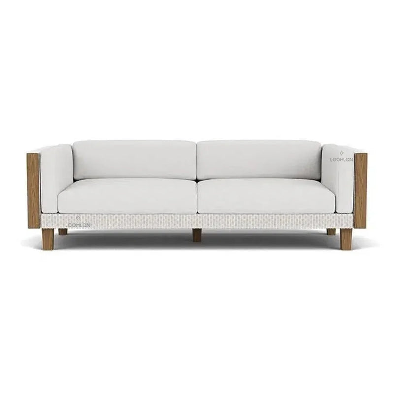 Expertly crafted in the USA, the Catalina Sofa from Lloyd Loom combines premium wicker and environmentally friendly FSC-certified teak for a sophisticated, durable outdoor furniture option. With a satisfaction guarantee and long-term warranty, this contemporary lounge collection features clean lines, plush cushions, and comfort-scale seating inspired by the relaxed island attitude. The Lloyd Loom wicker woven over aluminum frames is guaranteed to withstand the elements without cracking or peeling, and can be customized with 20 rust-resistant finishes and a variety of fade, mildew, and water-resistant fabrics for a truly personalized look. Additionally, the Comfort Plush Premium Outdoor Seating System offers exceptional comfort and resilience while being inherently mildew and bacteria resistant. Create your own luxurious outdoor oasis with the Catalina Sofa.