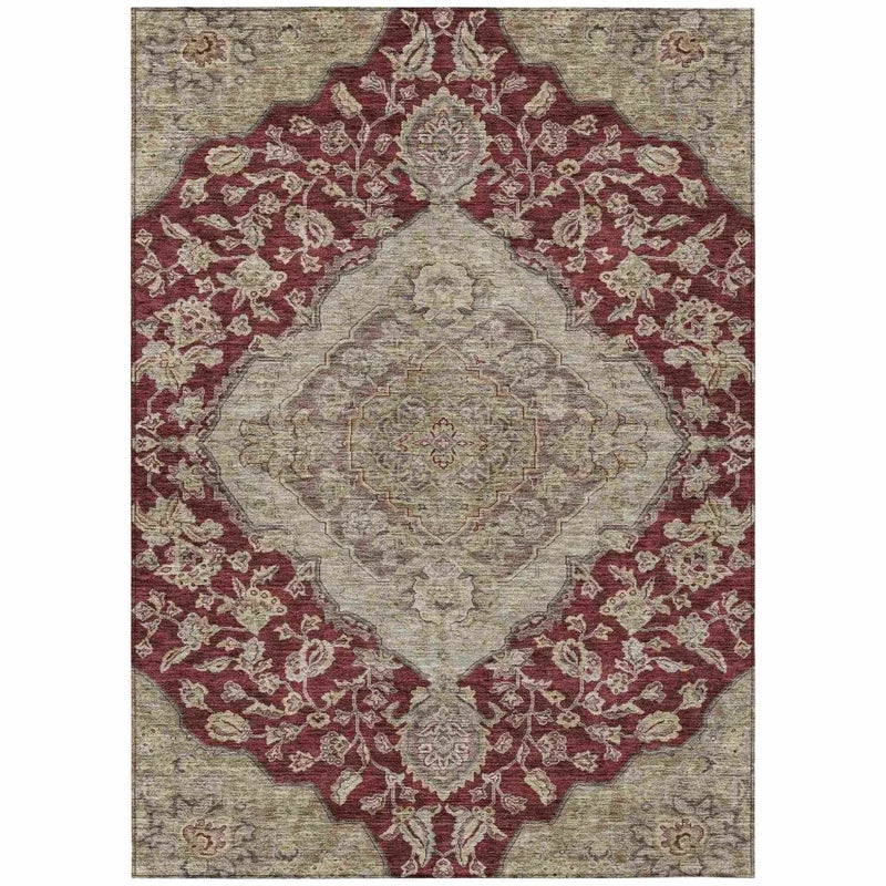 Celia Red Washable Rug UV Safe With Non-Skid Backing Features:
