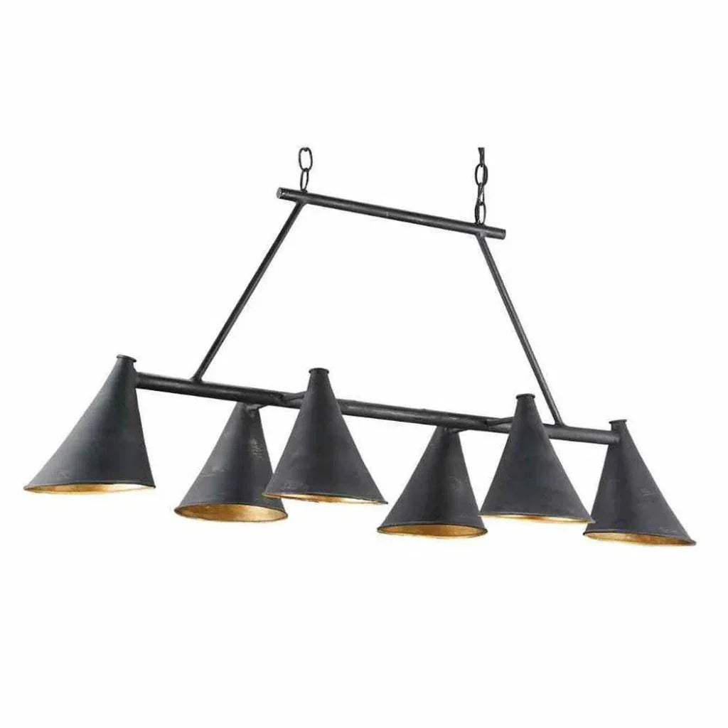 French Black Gold Leaf Culpepper Rectangular Chandelier - LOOMLAN - Currey & Co - Chandeliers