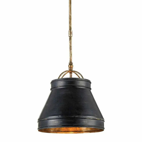 The Lumley Black Pendant has an urban edge to its design with its hand-finished frame in French black and a Pyrite bronze interior. The petite shade extends from a stem with an adjustable hanging length to make this black pendant terrific for grouping at different heights. Adjustable from 24" to 54" with use of included chain/rod kit/cable. If your space calls for a longer drop, additional chain/rods/cable is available for purchase.