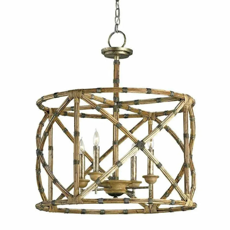 Pyrite Bronze Washed Wood Natural Palm Beach Lantern - LOOMLAN - Currey & Co - Pendants