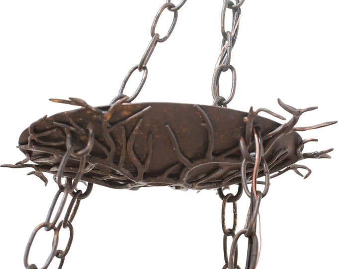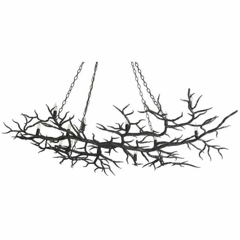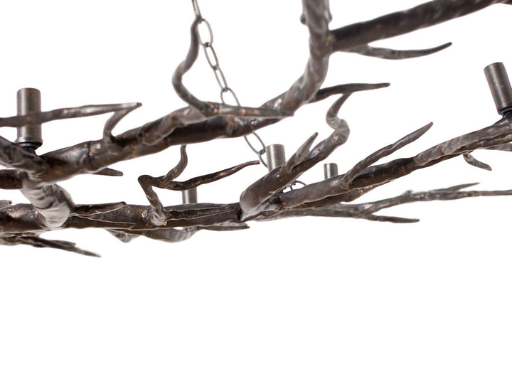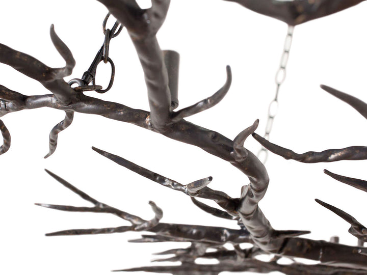 Our Rainforest Bronze Chandelier has fourteen lights nestled within the hand-forged wrought iron shade of this fixture. The limbs, in a rustic bronze finish, are life-like as they cup the bulbs placed so skillfully on them.