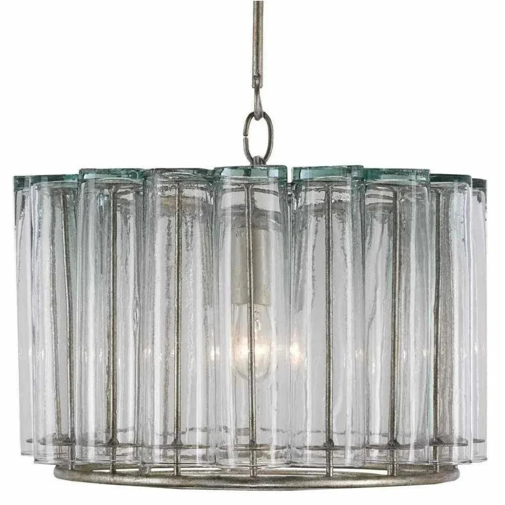 Indulge in luxury with our Silver Leaf Bevilacqua Pendant. Crafted with reflective glass flutes made from repurposed bud vases, this pendant boasts an environmentally-conscious and elegant design. Completed with an exquisite silver leaf finish, it effortlessly enhances the recycled glass's natural hues. Part of the exclusive Bevilacqua collection.