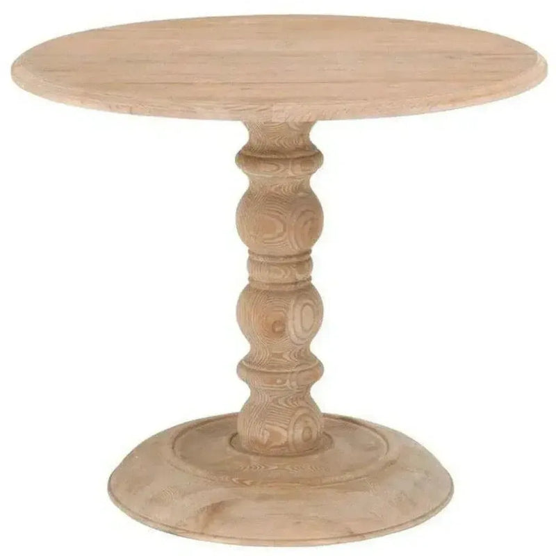 Elevate and enrich your dining area with the Chelsea 36" Round Dining Table. The perfect blend of style and substance, this transitional piece boasts a sturdy pine and Pine Veneer construction, with a beautifully turned wood pedestal base. Each item in our exclusive Bella Antique Collection showcases unique variations in color and texture, highlighting the natural allure of materials such as natural stone, antiqued metal, concrete, and reclaimed wood. Please note that these natural variations, including uneven grain, blemishes, scratches, marks, and cracks, add character and are not considered defects. Embrace the individuality of our handcrafted products and take special care to protect the natural finish. Explore the luxurious and refined world of our Bella Antique Collection and experience the beauty of premium materials like never before.