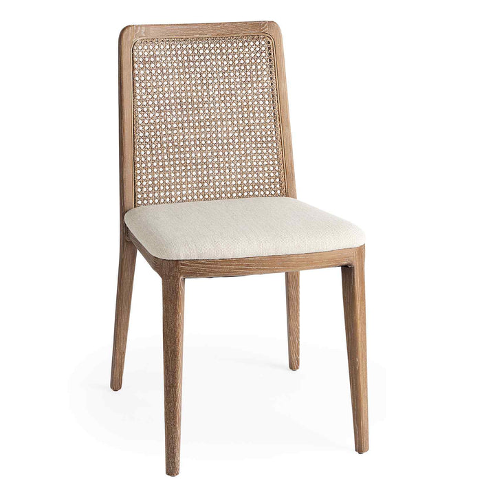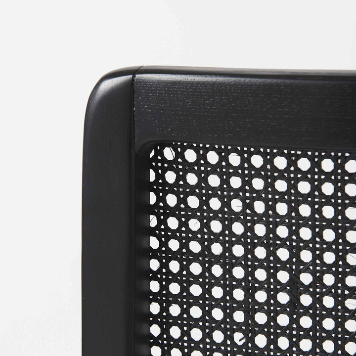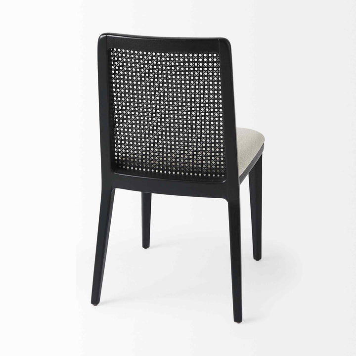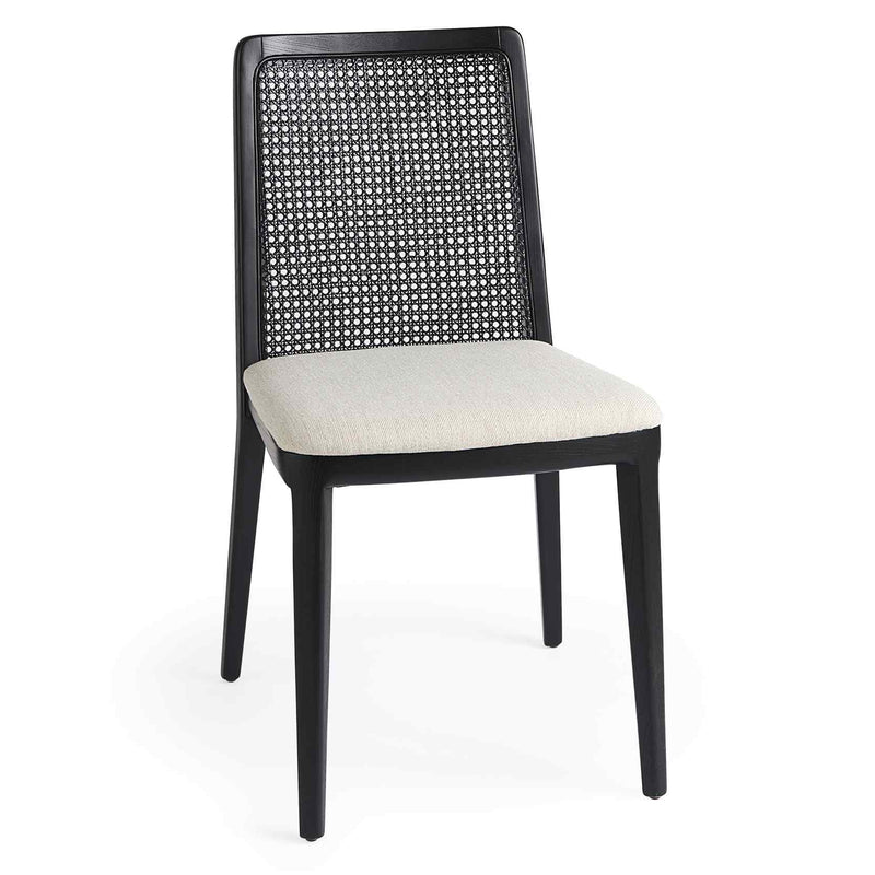 The Clara Black Wood Dining Chair with Cane Back combines classic style with modern durability. Its armless design features a solid wood frame, giving it a bold yet elegant look. The chair's woven cane back adds a touch of texture and charm, while the cream linen blend upholstery provides a refined and comfortable seating experience. Crafted with care, the chair's fabric is certified for its eco-friendly and durable qualities, ensuring longevity and peace of mind. Perfect for dining rooms or office spaces, this chair offers a stylish and functional seating solution ready to use right away.