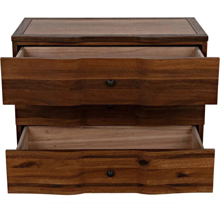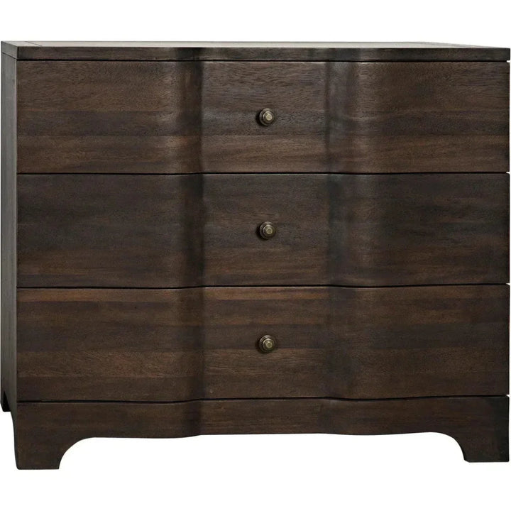 Expertly handcrafted and elegantly designed, the Claudie Wood Walnut Chest brings sophistication to any room with its clean lines and distinctive ripple-like texture across the front. This versatile chest offers a refined aesthetic in your choice of two luxurious finishes—Dark Walnut or Ebony Walnut—each enhancing the natural beauty of the walnut and veneer construction. Whether you prefer the richness of dark walnut or the depth of ebony, this piece makes a refined statement while serving as a practical storage solution in a stylish form.