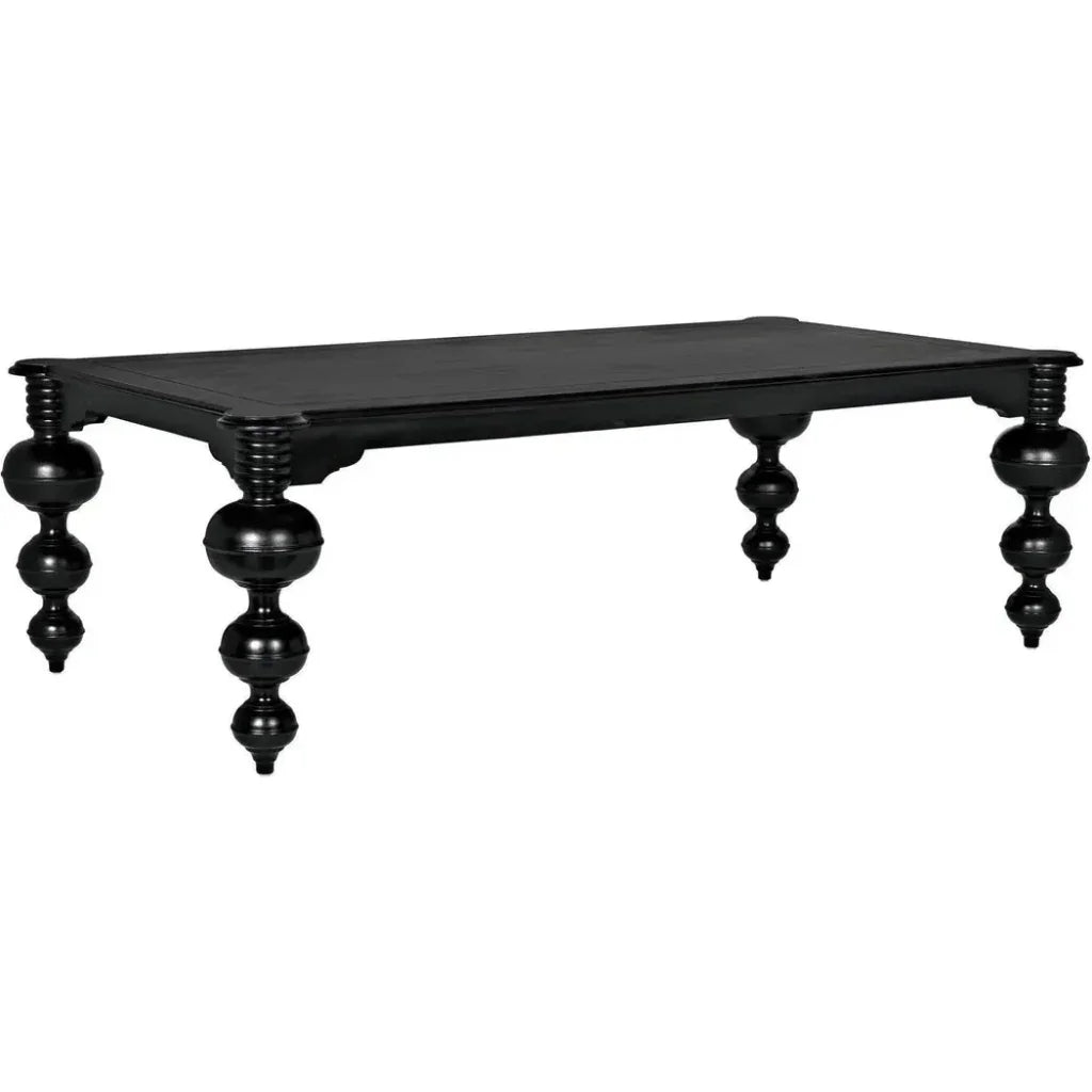 This dining table is a masterpiece of expert craftsmanship. Made with solid mahogany and featuring a deep, hand-rubbed black finish, it exudes sophistication and elegance. The extravagantly turned legs and rounded corners of the rectangular top add a touch of luxury to any dining room. Impress your guests with this stunning piece. This spectacular dining table has been expertly hand-carved of solid mahogany with a deep, hand-rubbed black finish. Its extravagantly turned legs dazzle, and are mirrored in the rounded corners of its rectangular top Expertly crafted with attention to detail, this dining table is made with solid mahogany and finished with a deep, hand-rubbed black finish.