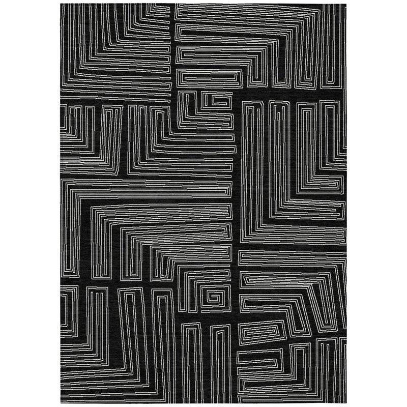 Experience the sharp elegance of this area rug, where thin lines intersect at right angles to create a stunning geometric pattern. This transitional rug effortlessly bridges contemporary and classic styles, making it a versatile choice for any setting. Its UV stabilization ensures lasting color, while the ultra-thin build offers convenience. Whether placed indoors or outdoors, this rug is designed to withstand the test of time, making it a reliable choice for homes with pets and children.