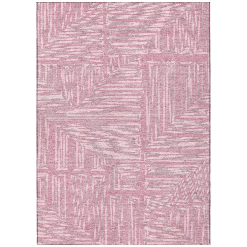 Experience a blend of style and practicality with this elegantly designed area rug. The Clayra Pink Washable Indoor-Outdoor Rug features a striking geometric pattern formed by thin, intersecting lines. This design merges contemporary and classic aesthetics, making it a versatile choice that enhances any space. Its delightful pink hue adds a touch of charm, while the UV stabilization ensures the color remains vibrant, even with exposure to sunlight. Whether placed indoors or outdoors, this rug is a perfect fit for every setting, complementing your decor beautifully.