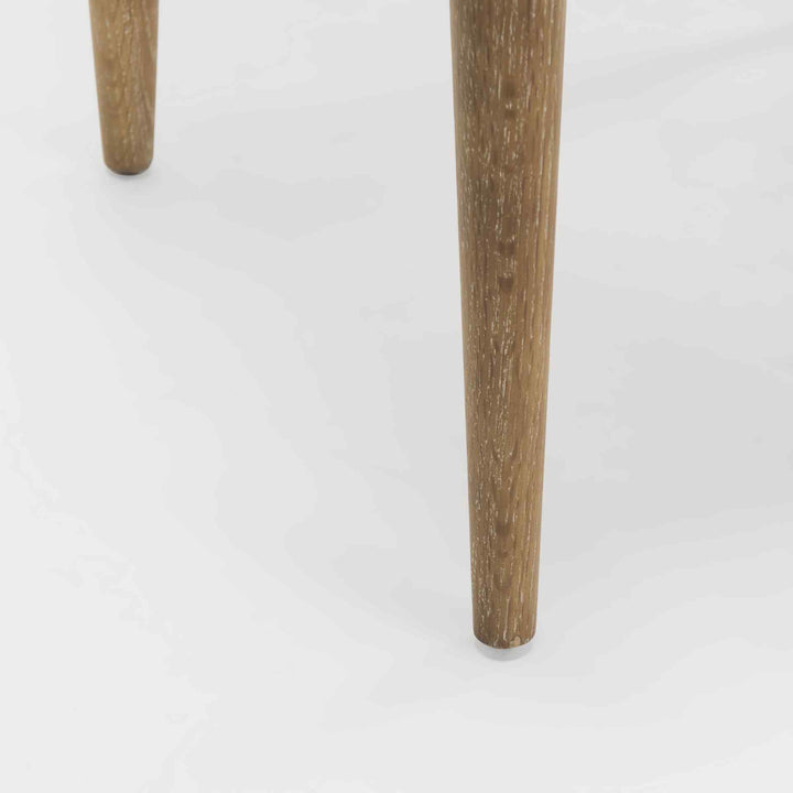 - Elegantly tapered legs with soft whitewash finish