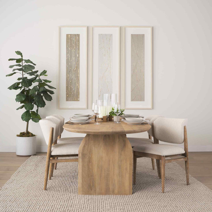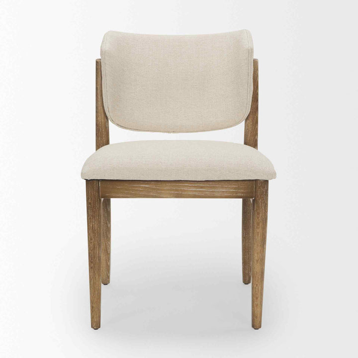 The Cline Cream Dining Chair offers a stylish blend of comfort and elegance, making it a perfect addition to any dining space. Crafted from solid wood, this chair features a soft cream fabric that is both durable and comfortable. The curved design and plush padding ensure you enjoy relaxing and supportive seating. Its light brown wood legs provide a modern touch, adding a hint of architectural flair. The chair's neutral color and sleek design make it versatile for various styles, from modern to transitional. Plus, it comes ready to use, with no assembly required.