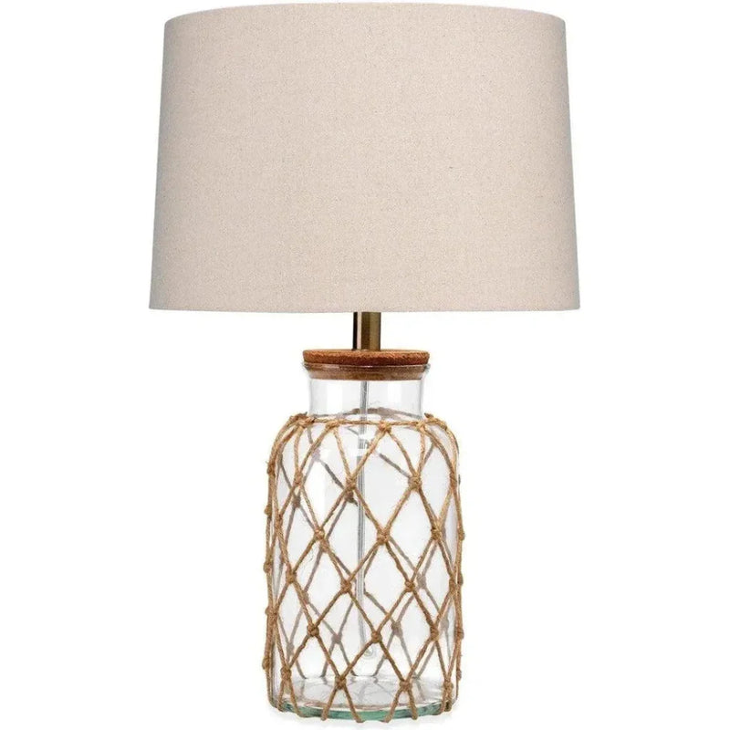 Add a touch of beachy charm to your home with this Coastal Style Clear Glass Rope Hugo Table Lamp. Its sleek and modern design, combined with the high-quality materials used, make it a durable and stylish addition to any space. Create a relaxing coastal vibe or add a casual touch to your decor with this lamp. A clear glass jar table lamp wrapped in a beachy Natural jute net makes the perfect Coastal Casual lamp "Featuring a sleek and modern design, this Coastal Style Clear Glass Rope Hugo Table Lamp adds a touch of beachy charm to any space. Made with high-quality materials, it's a durable and stylish addition to your home decor.