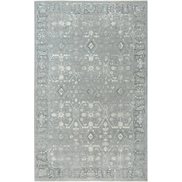 Explore your vintage, transitional style using this luxurious rug of New Zealand wool with Tencel, nylon, and wool blend shimmering accent fibers. brings you the Aurora Rug collection in beautiful grey, ivory, and beige colors. Each rug is hand-washed, hand-stretched, hand-sheared, and hand-serged, then finished with a .25-inch fringe at two edges for the look and feel of much more costly items. As part of our exclusive Hybrid collection, Aurora is as close as you can get to a 100% hand knotted rug at a fraction of the cost. Power loomed at our plant in India using New Zealand wool accented with a shimmering fiber of Tencel, Nylon and Wool blend, each piece is then shipped to our hand made facility where it is Hand Washed, Hand Stretched, Hand sheared and Hand serged. To complete the authentic look of a hand knotted rug, Aurora features real fringe trimmed to a short ¼” created from the warp/weft strings.