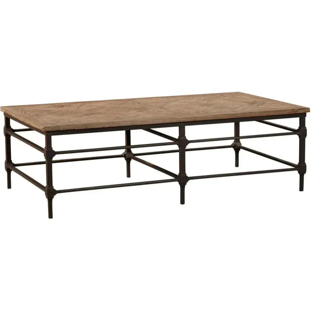 Transform your living space with the bold Coldiron Cocktail Table! This sleek and stylish piece showcases diagonal parquet panels and a modern iron base. For a cohesive look, combine it with the accompanying side table. This is the perfect addition for those who crave an adventurous and daring environment.