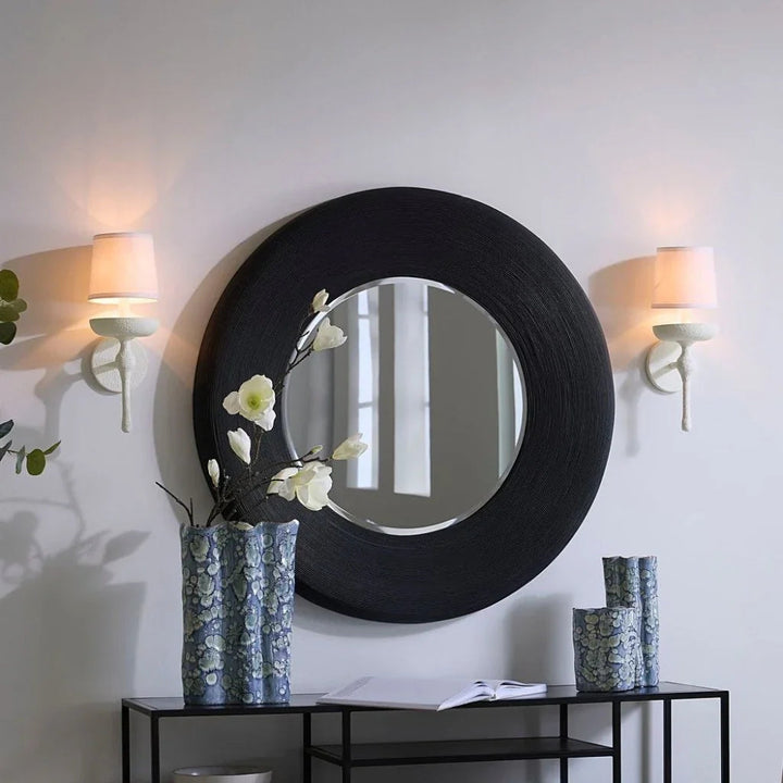 The Concord Wall Sconce, offered in Grey or White plaster finishes, blends a traditional silhouette with a textured surface that adds coastal charm and casual appeal. Crafted from steel with a hand-applied plaster coating, it balances formal design with approachable character. The grit of the plaster introduces unique texture, while the tapered white linen shade softens the look, making it suitable for transitional, coastal, or contemporary interiors. Each artisan-made piece carries natural tone and texture variations, ensuring individuality in every sconce.