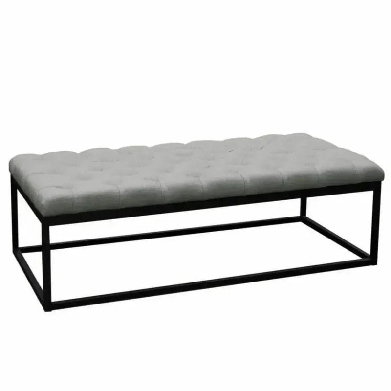 Black Powder Coat Metal Large Linen Tufted Bench in Grey Features: