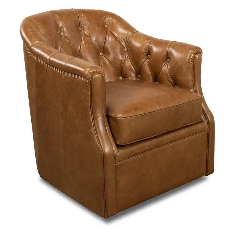 Coolidge Leather Swivel Club Chair Cuba Brown - LOOMLAN - Sarreid - Club Chairs