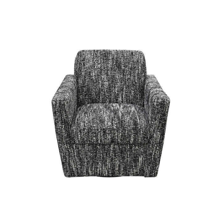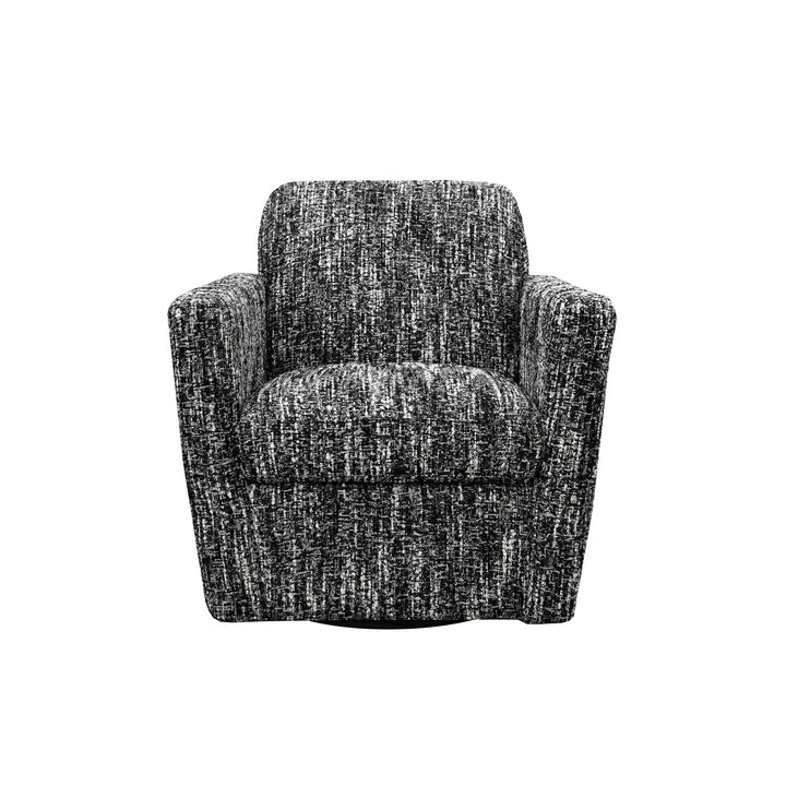 Relax in style with the Cooper Swivel Club Chair in Chanel Black. This comfortable chair is crafted from sustainable materials, combining pine, hardwood, metal, and plush PU foam for a soft seating experience. Wrapped in durable polyester and acrylic fabric, the chair stands out with its sleek black color, making it a perfect addition to any modern living room. Its smooth swivel feature ensures you can easily turn to engage with your surroundings without missing a moment. Whether you’re hosting guests or seeking a cozy spot to unwind after a busy day, this chair offers both comfort and a touch of elegance.