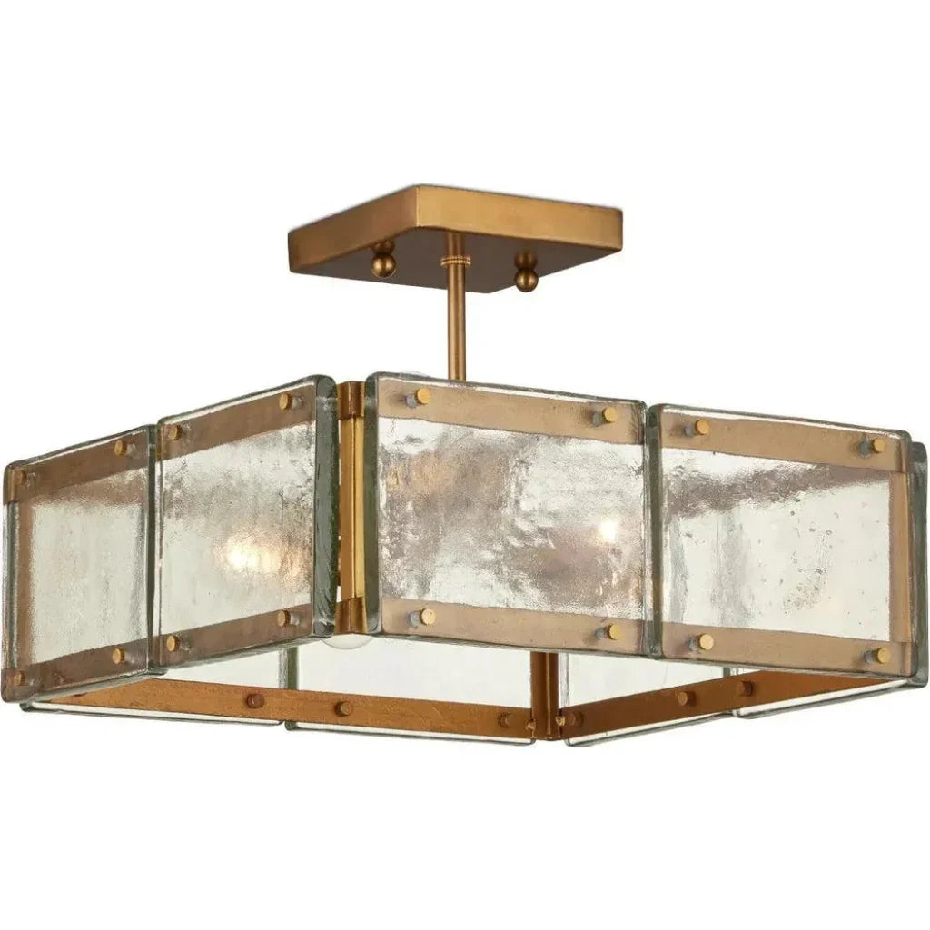 Countervail Metal & Glass Gold Square Semi-Flush Mount-Flush Mounts-Currey & Co-LOOMLAN