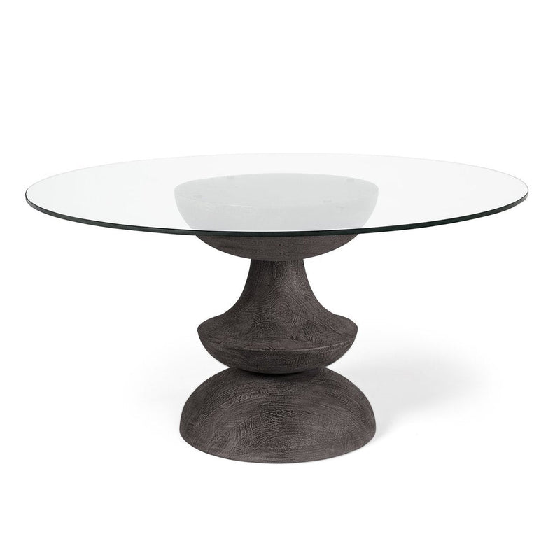 Solid wood gives the Crossman III Dining Table a strong and stylish foundation for your dining area. This table combines high-quality Indian hardwood with a sleek, round tempered glass top, creating an inviting space for meals and gatherings. Its unique inverse pedestal base is not only striking but also ensures stability, while the dark brown and gray tones highlight the natural grain and character of the wood. This means it fits beautifully in modern or woodlands-inspired settings. Another thing you'll like is the easy assembly, allowing this stunning piece to enhance your space shortly after it arrives.