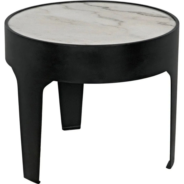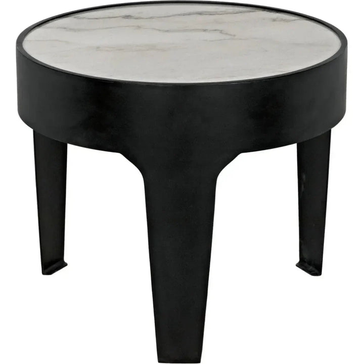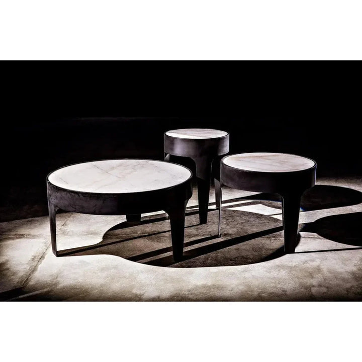 The Cylinder Steel and Marble Round Side Tables feature a striking combination of natural Bianco Crown marble and minimally finished industrial steel, creating a clean and timeless design. Each table is expertly crafted with a thick metal band supporting a round slab of natural white marble, ensuring every piece is unique due to the stone’s natural variations. Available in small and large sizes, these tables bring elegance, durability, and functional style to any home or office setting.