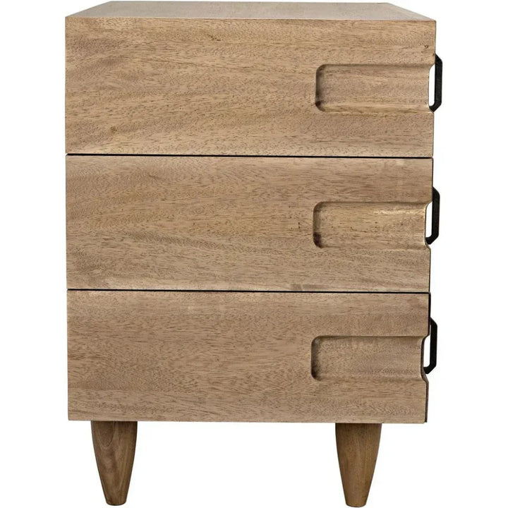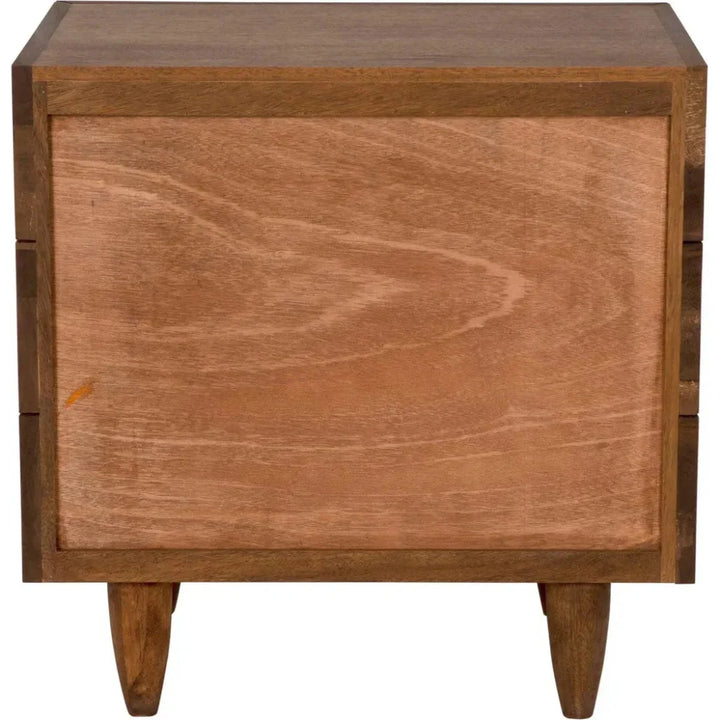 The 32" David Wood Rectangular Side Table combines rustic charm with refined craftsmanship. Its tapered legs and elegant design details create a sophisticated contrast to its rough-hewn appearance, offering timeless appeal for any interior. Available in two finishes—dark walnut and washed walnut—this versatile piece adds simple beauty and subtle sophistication to your decor. Carefully constructed from walnut and veneer, it brings primitive character and polished style together in a striking and durable form.