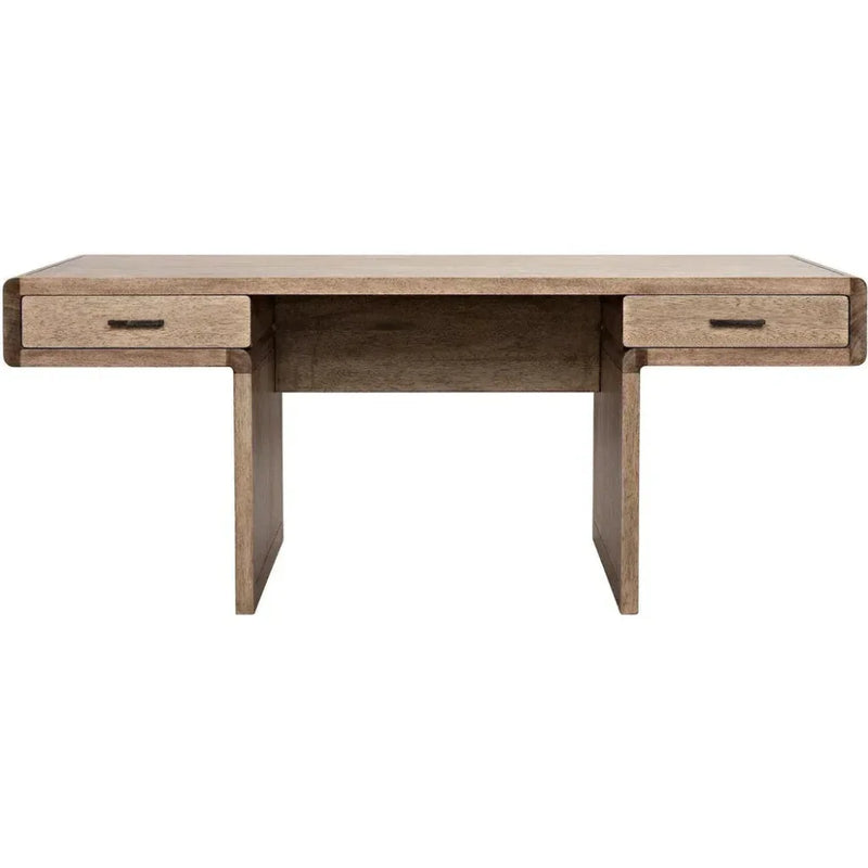Elevate your workspace with the Degas Desk in washed walnut wood. With its timeless style and sleek, minimalist silhouette, this desk exudes sophistication. The sharp edges and two drawers offer both style and function for a polished, organized office. Effortlessly enhance your workspace with this classic, contemporary desk. This classic, contemporary desk boasts timeless style and an understated sophistication. Featuring two drawers and a clean, minimalist silhouette with sharp edges, it's the perfect addition to any sophisticated space. Effortlessly elevate your workspace with a touch of sophistication. This desk's sleek design with sharp edges and two drawers offers both style and function for a polished and organized office.
