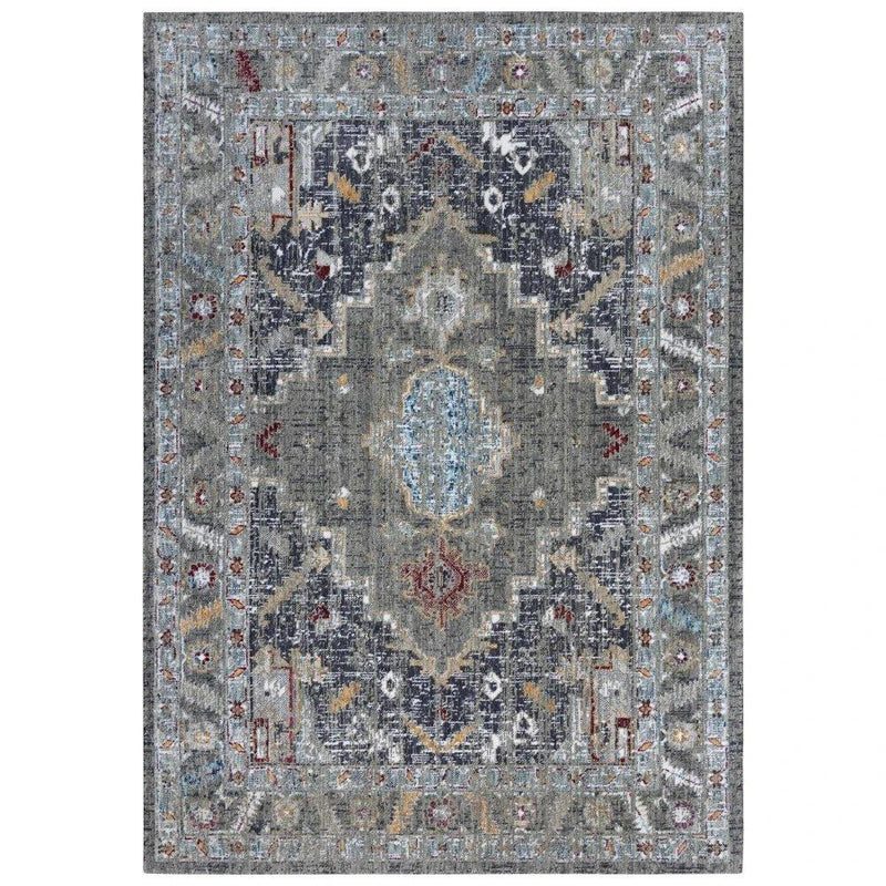 Reminiscent of years gone by, this Sanction Classical Vintage Rug with its neutral ivory, grey, and charcoal, plus burgundy, blue, and gold highlights will compliment any room in a traditional or vintage style home décor. Made with 100-percent recycled polyester, you are being environmentally astute. Power-loomed for uniformity and durability, this rug will stand up to even the highest areas of foot traffic. Combining the modern technology of a power loom, with age old hand finishing techniques, makes this Hybrid rug an amazing value for such exceptional quality. The use of recycled Polyester adds to the environmentally friendly nature found in hand made rugs. Each piece is hand washed to add softness and a rich patina. Additionally, each piece is then hand sheared and had surged as fine rugs have been made for centuries.